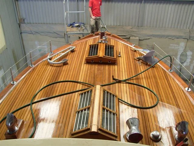 Timber boat restorations - teak deck AFTER